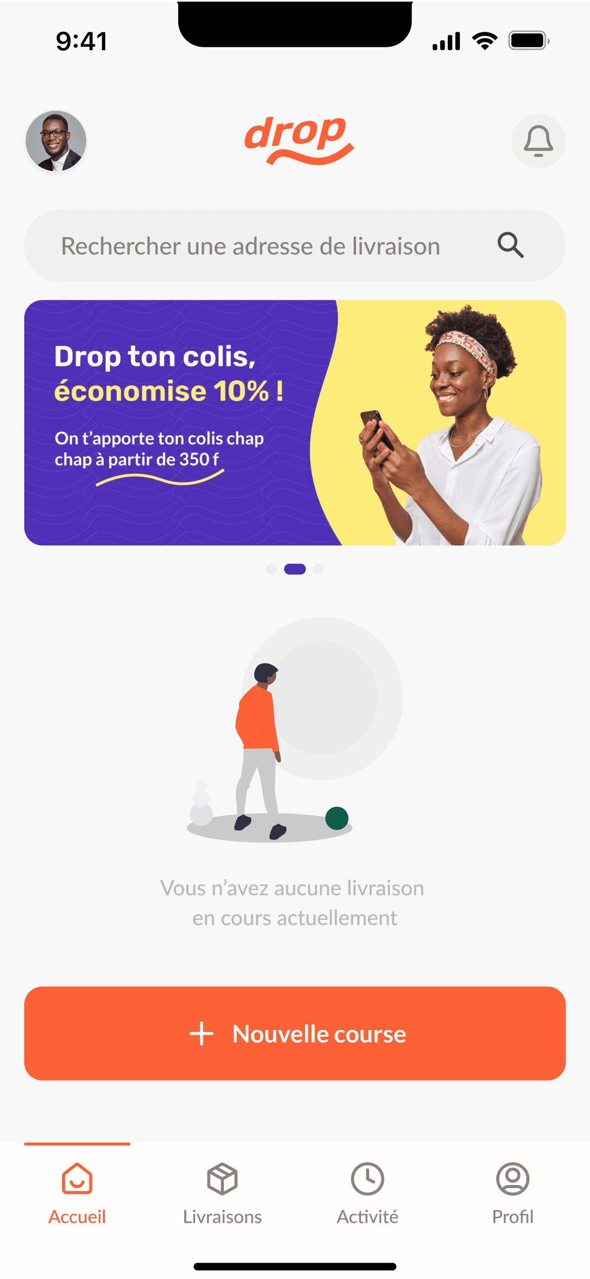 Une fois votre commande validée, un livreur Drop est assigné. Vous recevez une notification avec ses coordonnées et un suivi en temps réel.