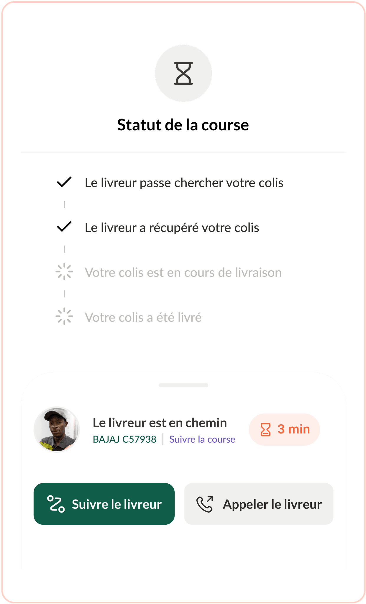 Restez informé.e à chaque étape grâce au suivi en temps réel. Vous recevez une confirmation dès que le colis est livré.